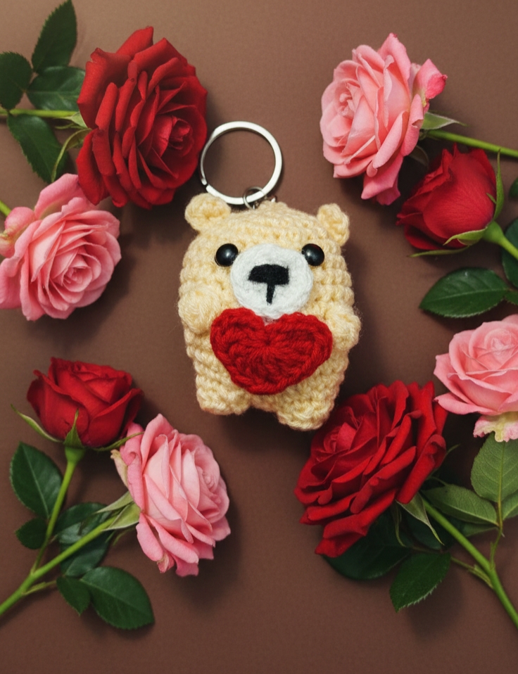 Looking for the perfect Valentine’s Day gift? This handmade crochet teddy bear keychain is a cute and thoughtful way to show someone you care. Made with soft yarn, this mini amigurumi teddy bear makes a charming keychain accessory for bags, backpacks, or keys.