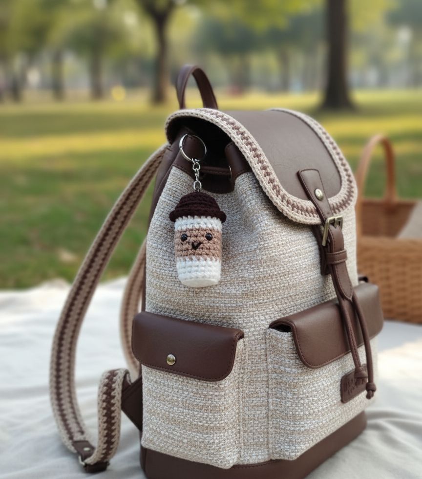 Add some sweetness into your life with our cute crochet coffee cup keychain .this adorable and handmade crochet keychain is designed to resemble your favorite cup of coffee , making it is a perfect accessory for coffee lovers . crafted with high quality yarn , it’s durable and lightweight ,perfect for attaching your keys , purse , or backpack . whether you ‘re treating yourself or looking for a beautiful gift , this crochet coffee keychain is sure to impress with its intricate design and charming appeal . height of this coffee cup yarn keychain is 7cm and width – 3cm .