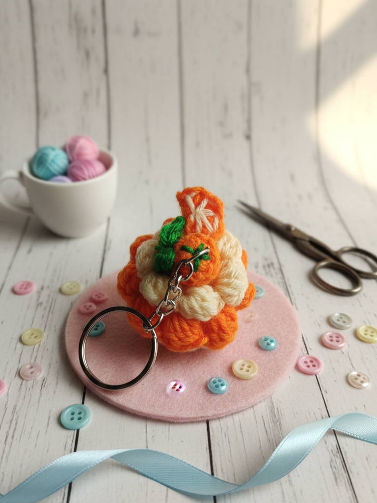 Brighten your day with this adorable orange crochet cake keychain, a handmade amigurumi dessert charm inspired by a delicious slice of orange cake. Carefully crafted with soft, high-quality yarn, this mini crochet cake keychain features vibrant orange tones and textured “frosting” details that make it look almost good enough to eat.