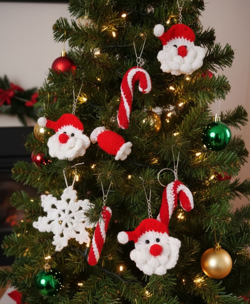 Our crochet Santa ornament brings jolly vibes to your tree with its cute, detailed design, while the snowflake crochet ornaments add a wintry, elegant touch. The sweet, colorful crochet candy and candy cane decorations create a whimsical look, making them the perfect way to enhance your holiday decor.