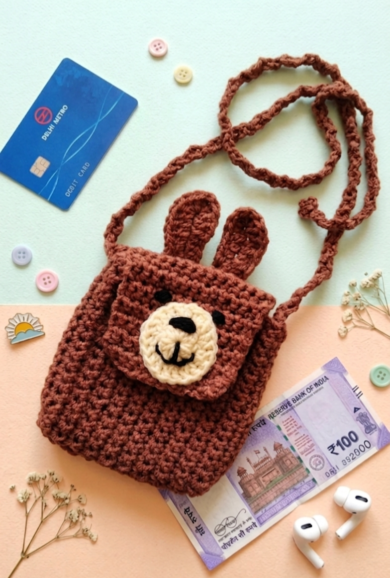 Meet our Adorable Handmade Crochet Purse for Cash, Cards & Earbuds. This charming crochet mini pouch features a kawaii bear face design, perfect for storing coins, cash, credit cards, and small essentials like earbuds. Crafted with soft, durable yarn, this lightweight and compact crochet pouch easily fits in your handbag or pocket. Ideal as a cute coin purse, crochet card holder, or small organizer, it also makes a perfect handmade gift for kids, teens, and crochet lovers. Shop this aesthetic bear face pouch for a stylish and functional everyday accessory.