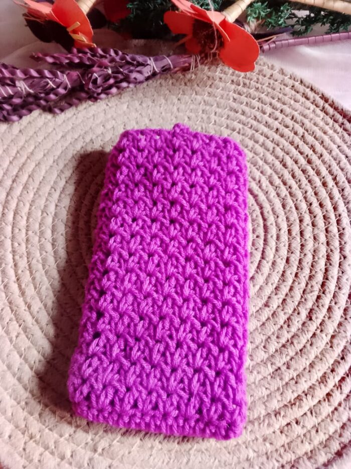Protect your phone in style with these handmade crochet mobile covers ,1st one is cute combination of purple and white and second one is multicolor in color , designed to combine functionality and fashion . crafted with high quality yarn, these crochet phone cases are durable , lightweight ,and soft to touch , offering excellent protection against scratches and minor bumps. featuring intricate crochet patterns and a snug fit , these covers are perfect for keeping your phone secure while adding a unique , artisanal charm . available in a variety of colors , design and sizes .these covers can be customize to your specific phone model .these crochet phone covers are compatible with most smartphones models .perfect for everyday use or gifting someone special .