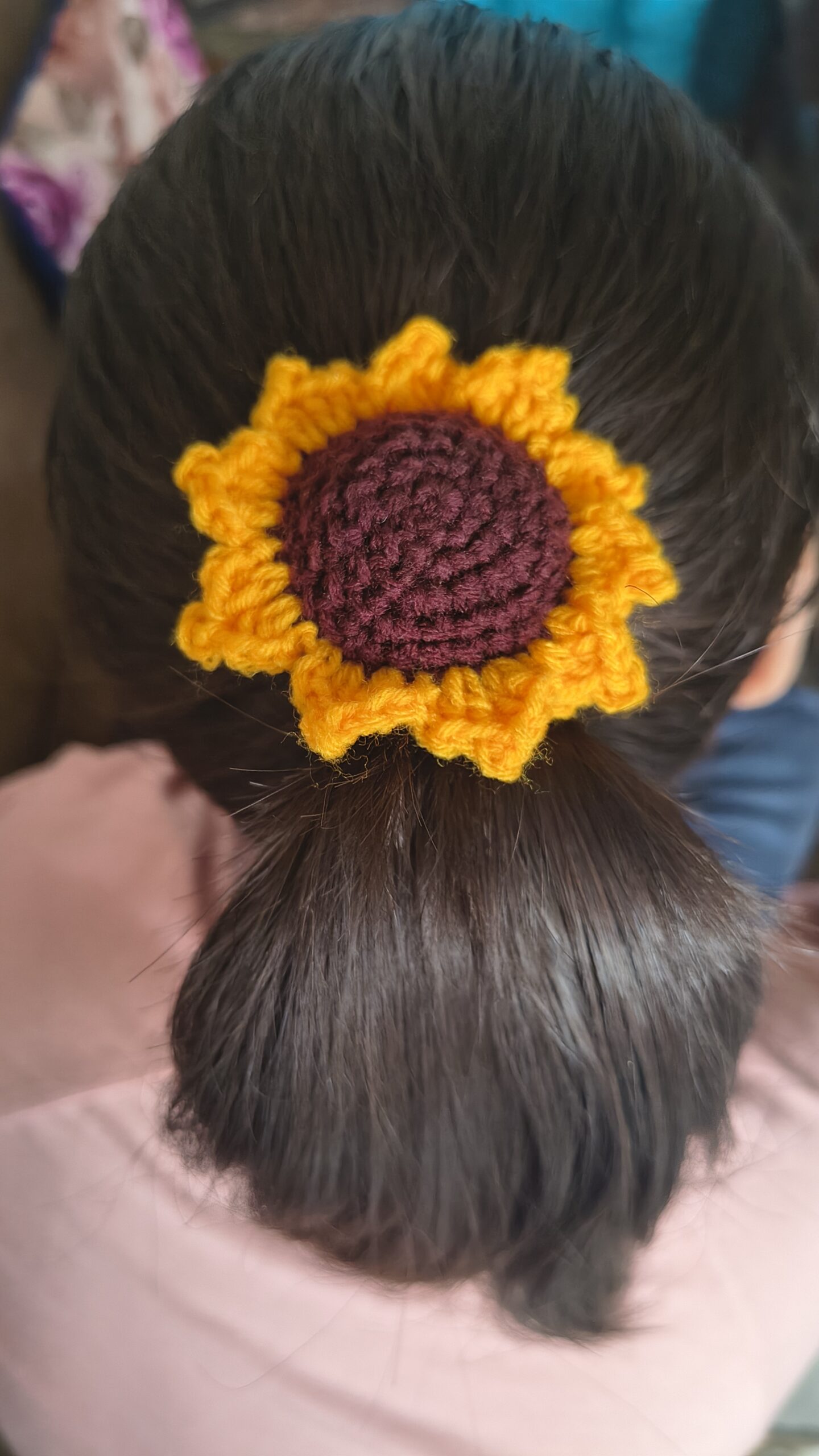 Brighten up your hairstyle with our handmade sunflower crochet rubber band for hair. Crafted with soft yarn and strong elastic, this crochet sunflower hair tie adds a cheerful, boho touch to any look. Perfect for ponytails, buns, and braids, this crochet flower hair accessory is comfortable, durable, and stylish. Ideal for girls and women, our sunflower crochet hair band makes every hairstyle bloom with handmade beauty.