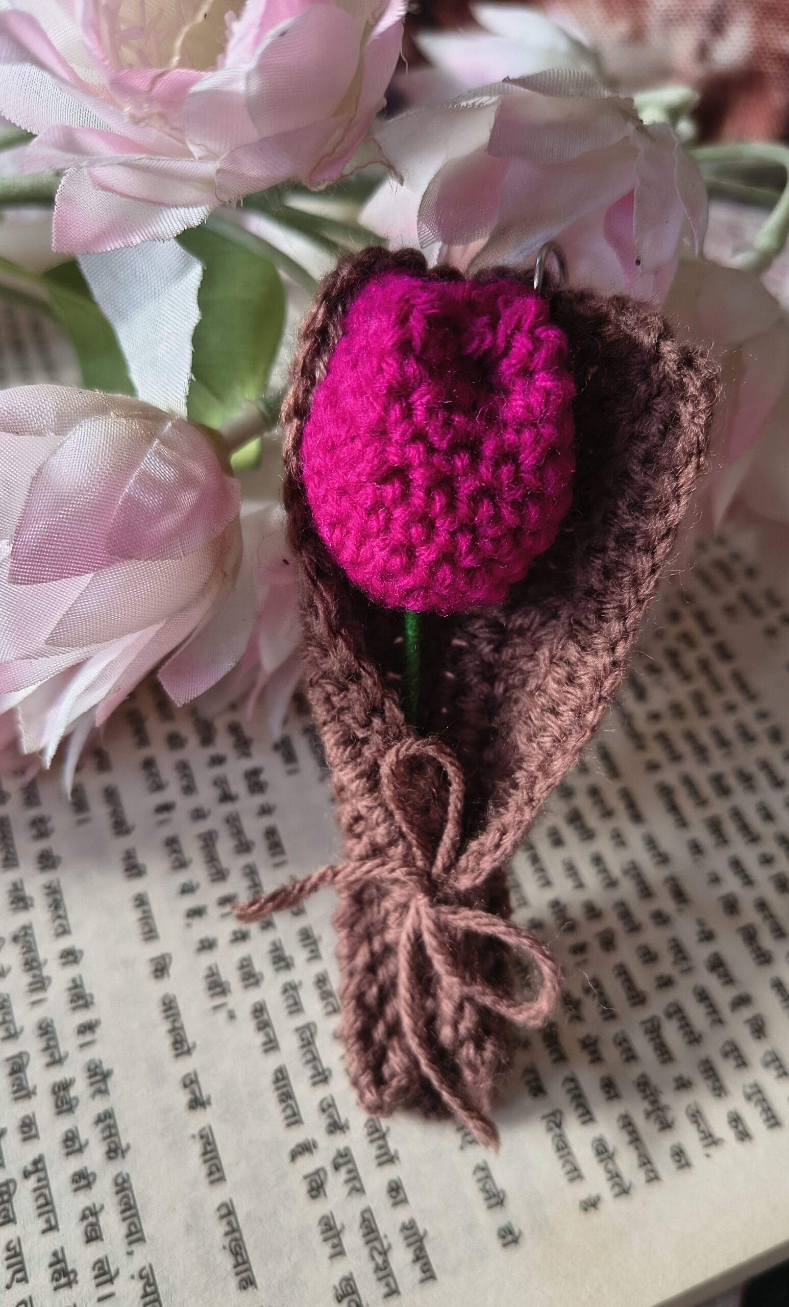 Carry spring charm wherever you go with this purple crochet tulip mini flower bouquet keychain. Handmade with soft yarn, this adorable miniature tulip bouquet adds a colorful, whimsical touch to your keys, bags, or backpacks. Perfect as a crochet flower keychain, handmade bag charm, or cute floral accessory, it makes a thoughtful gift for women, teens, and anyone who loves handmade crochet accessories, mini flower bouquets, and kawaii or cottagecore-inspired keychains. Lightweight, durable, and vibrant, this tulip crochet mini bouquet keychain is a charming way to brighten everyday essentials.