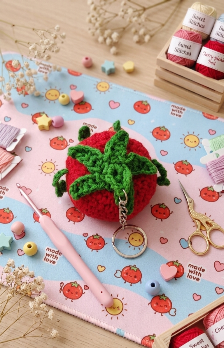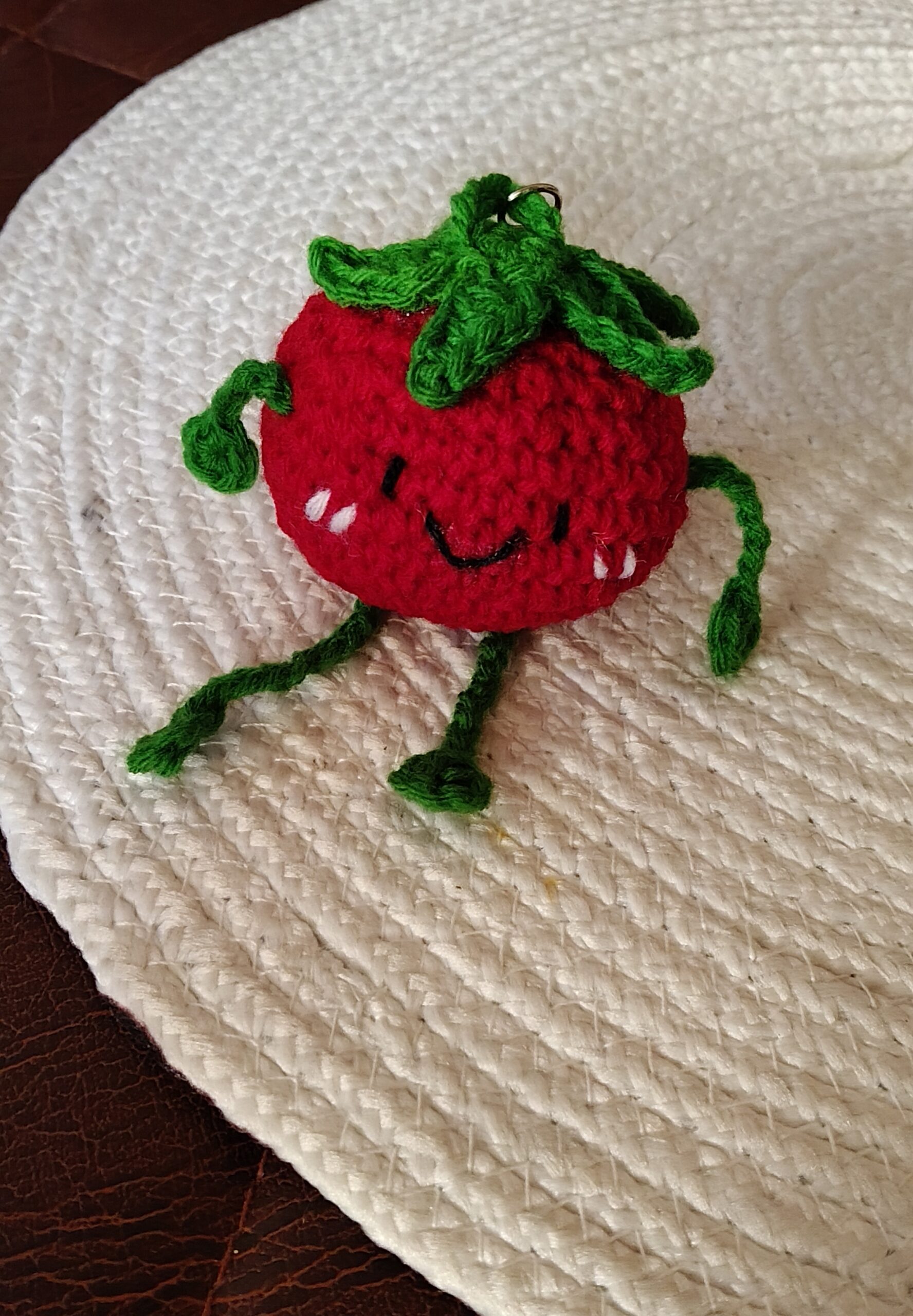 This crochet tomato keychain with hands and legs is a cute and unique amigurumi tomato keychain handmade with soft yarn and detailed crochet stitching. The playful crochet tomato doll with tiny arms and legs makes a fun crochet food keychain that adds charm to your keys, bags, backpacks, or purses. This handmade crochet keychain also works perfectly as a crochet bag charm or cute amigurumi accessory. Ideal as a handmade gift for crochet lovers, food lovers, and kawaii accessory fans, this mini crochet tomato keychain is lightweight, durable, and perfect for everyday use.