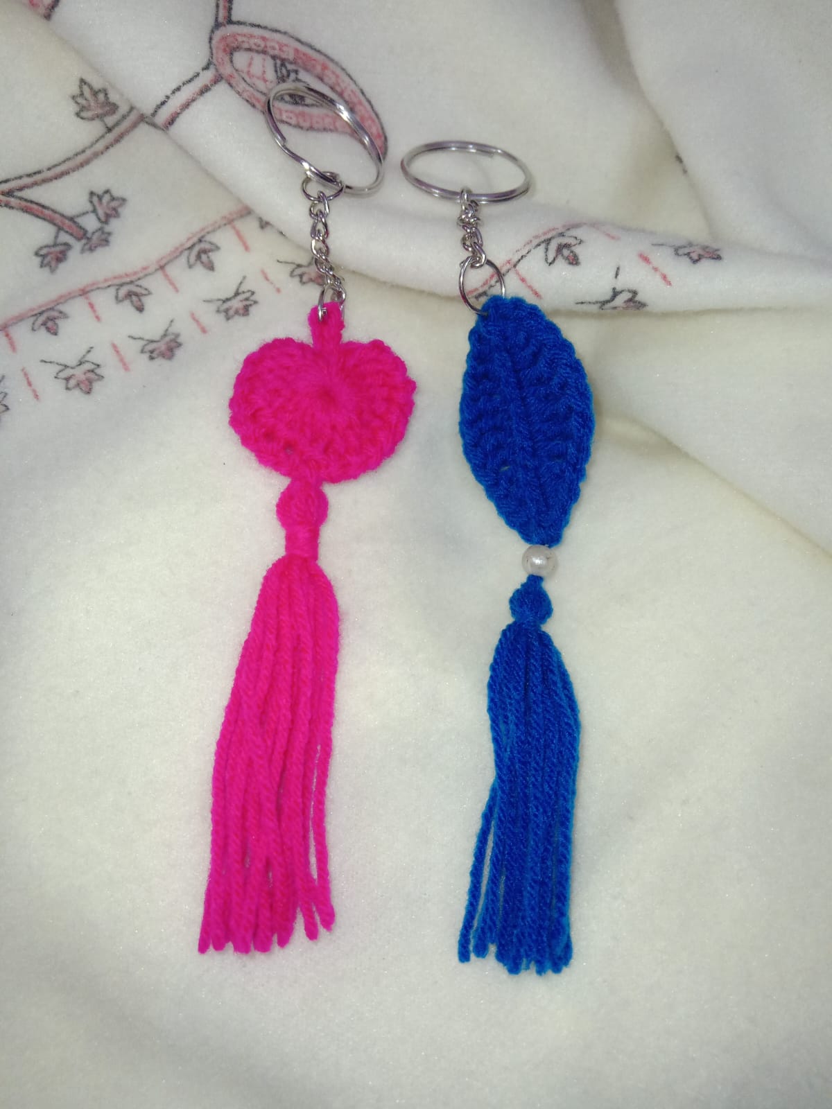 Discover our adorable heart crochet keychains ,perfect for adding a whimsical touch to your keys or bags . handcrafted with care , this charming accessories make for delightful gifts or personal treats .combo of 2 cute small heart pink and blue leaf keychains, these are made up of wool which is too soft and safe and purely handmade. you can gift these cute crochet keychains to your loves ones. h-7,w-3cm, 30 grams in weight .these cute crochet keychains specially design for those people who love handmade and pure things .