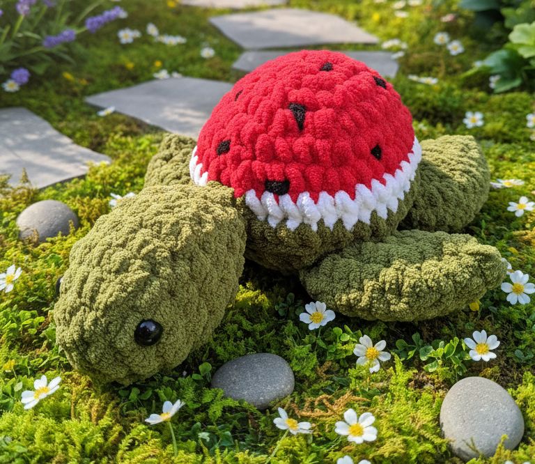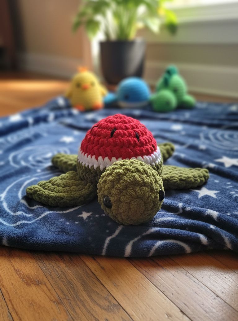 Adorable handmade crochet tortoise plush made from soft, high-quality yarn. This amigurumi turtle toy is perfect for cuddling, playtime, or décor. A unique, eco-friendly gift for turtle lovers, kids, and collectors.