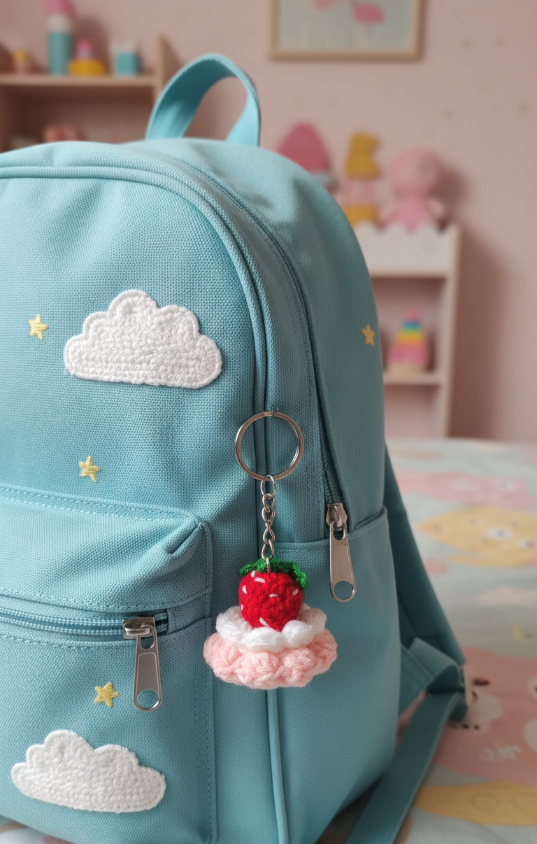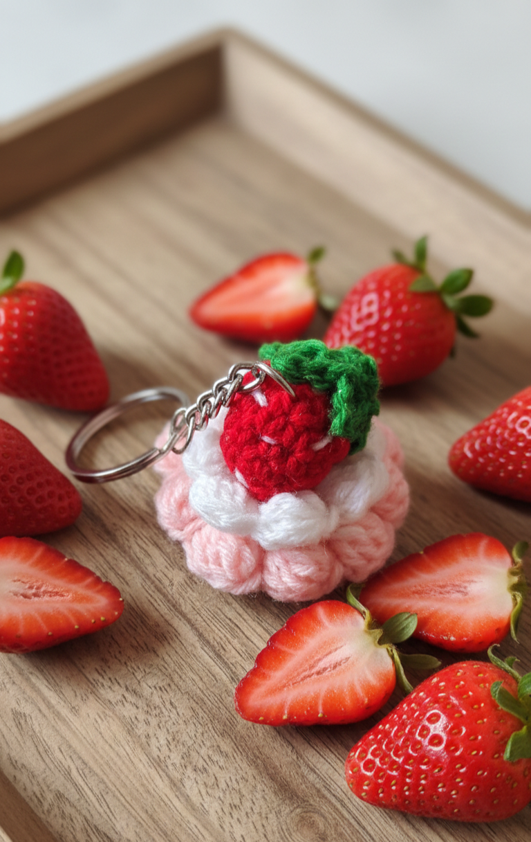 Add a touch of sweetness to your everyday accessories with this handmade crochet strawberry cake keychain! This miniature crochet cake keychain is crafted from soft, high-quality yarn in an adorable amigurumi dessert design, perfect for kawaii lovers, collectors, or anyone who enjoys cute crochet food charms. Lightweight and durable, this crochet strawberry cake bag charm easily attaches to keys, backpacks, purses, or even zipper pulls. Each piece is carefully crocheted by hand, making it a unique handmade keychain gift for birthdays, holidays, or special occasions.