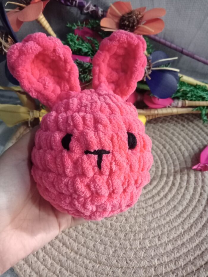 Delight in the softness and charm of this squeeze bunny crochet toy ; this crochet bunny plush is crafted with love from premium yarn , this crochet stuffed bunny is perfect for little hands to hold and squeeze . with its gentle texture and cute design , it is an ideal companion for children or a sweet decorative piece for room decor and nurseries decor . whether you’re looking for a thoughtful gift for baby shower or a cuddly friend , this handmade squeeze bunny is sure to bring joy and comfort .this soft crochet bunny is too lightweight and safe for children . height of this cute bunny plushie is 8cm , width – 5cm .